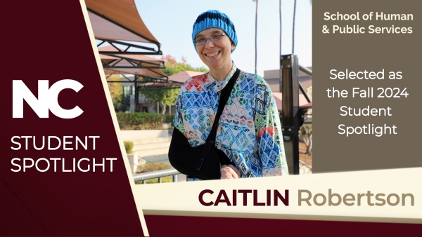 Caitlin Robertson was selected as the Student Spotlight in the School of Human & Public Services. Caitlin undergone a series of significant brain surgeries and even with some physical limitations as a result, she has never allowed it to slow her down and keep her from completing her work. She never complains, but instead remains upbeat, optimistic, and a role model to others always looking at what can be done. rather than what cannot.
