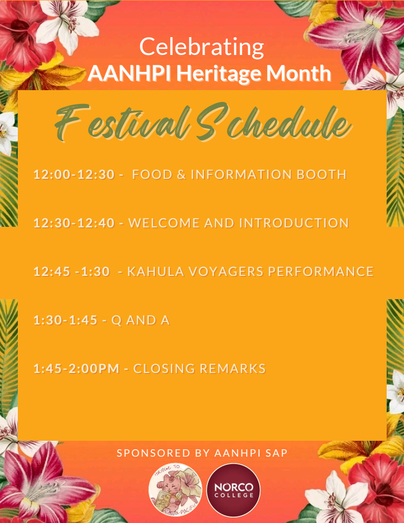 Please save the date for the 3rd ANNUAL AANHPI Heritage Month Celebration at the Amphitheater on Tuesday, May 21 from 12-2PM.